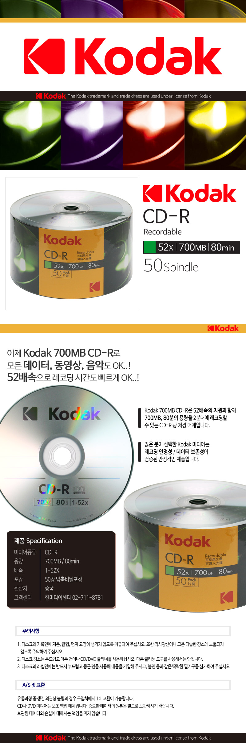 코닥 공CD-R 700MB 50장벌크/공CD/공시디/공DVD