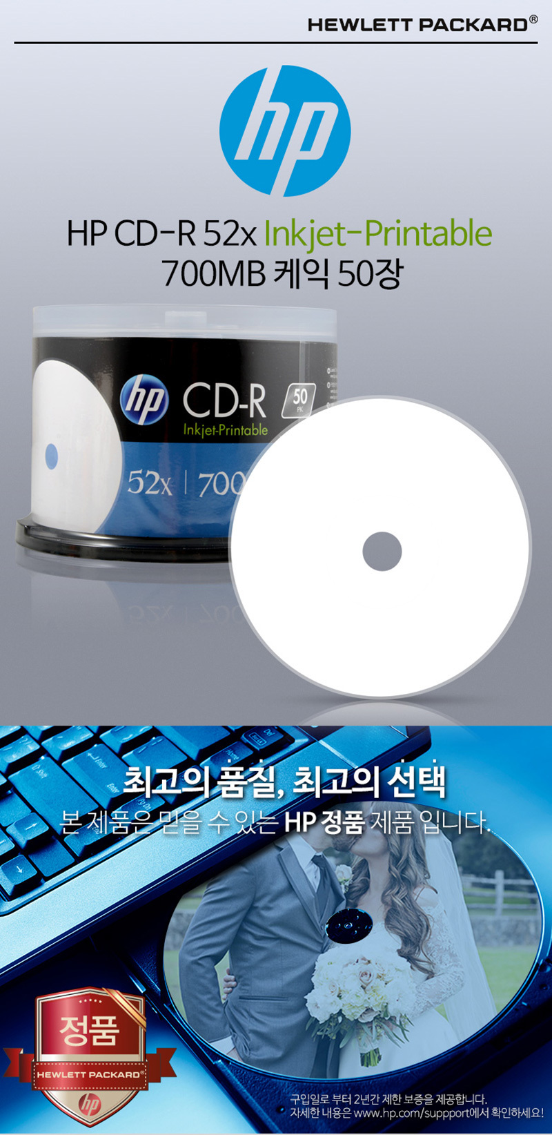 HP 와이드 프린터블 CD-R 50장/공CD/공시디/공DVD