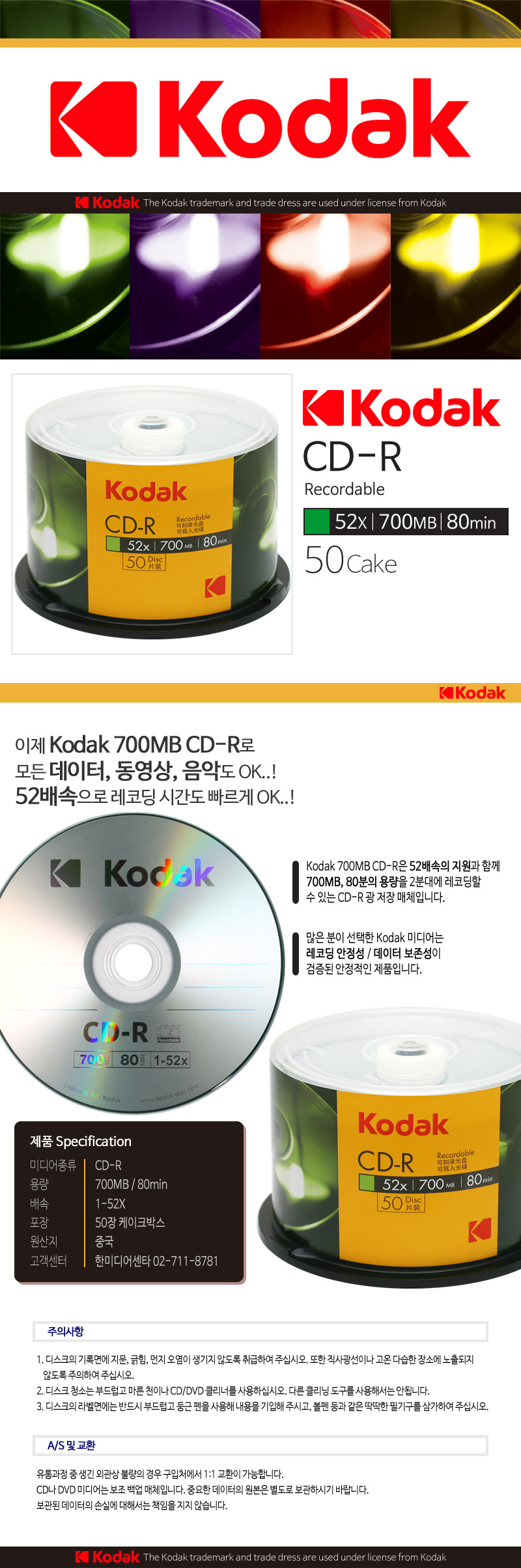 코닥 공CD-R 700MB 50장케이크/공CD/공시디/공DVD