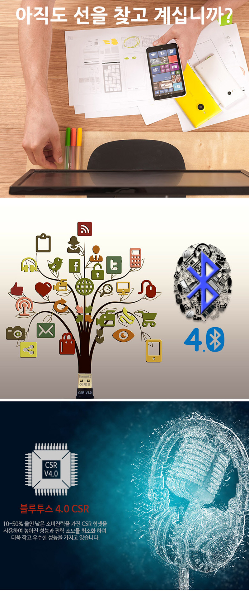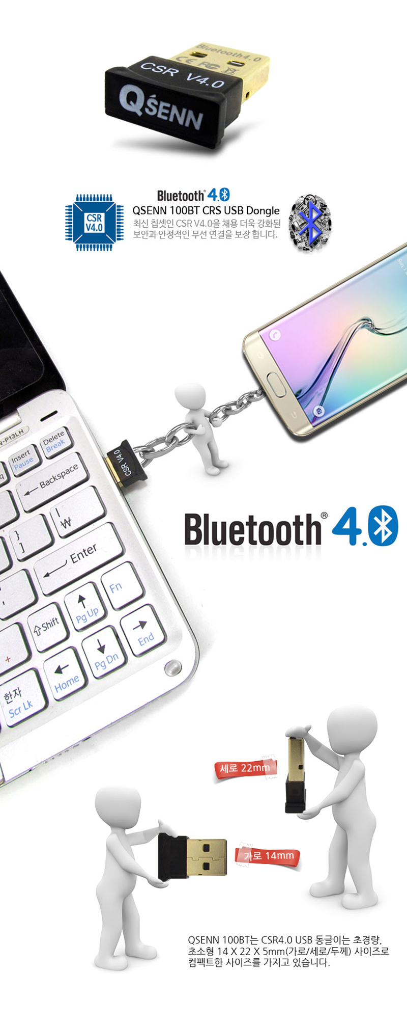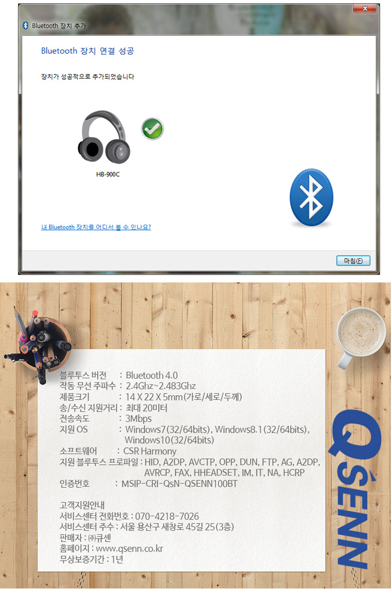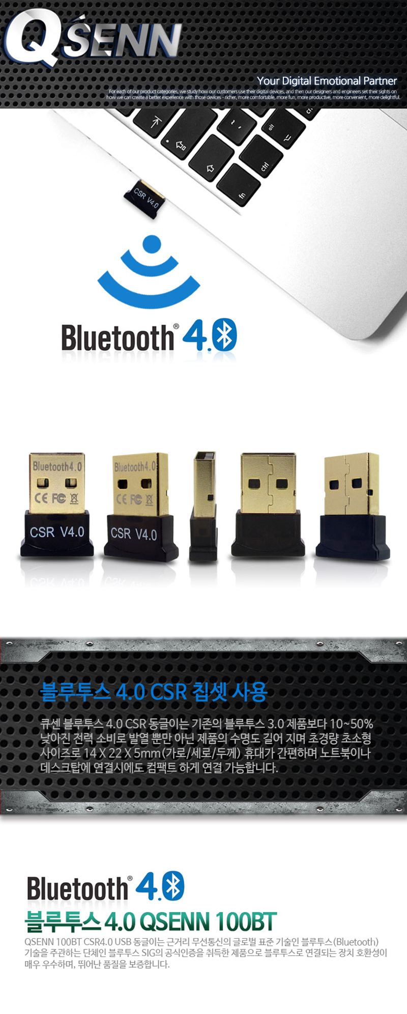 큐센 100BT PC 블루투스4.0 CSR USB 무선 오디오 동글이