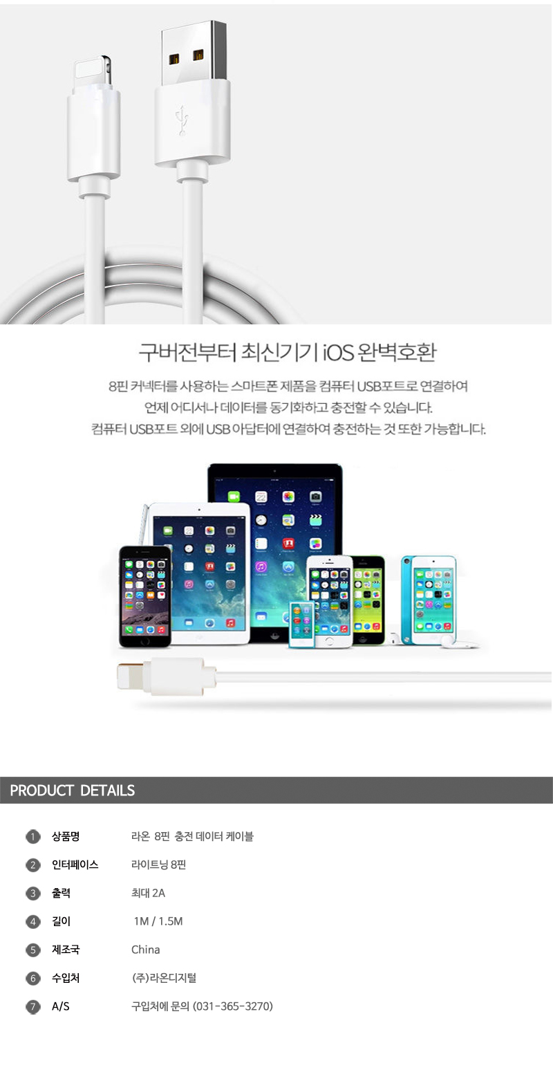 라온 8핀케이블 1M